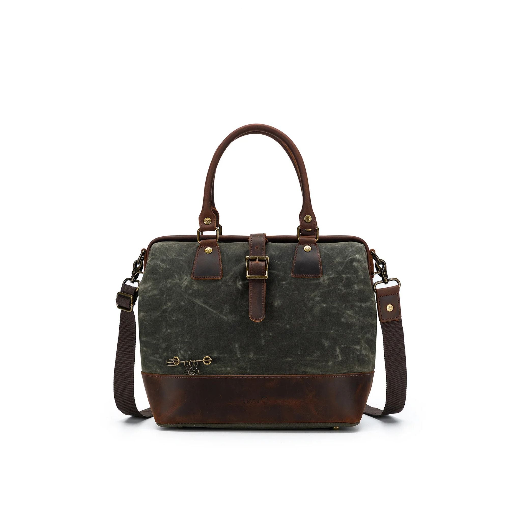 Truly a maker’s carryall, the Satchel has been reimagined as a chic doctor’s bag ! The Satchel comes equipped with a hard case opening and flat solid bottom, great for keeping your bag propped open to knit or crochet out of, two secure clasp closures, and plenty of pockets and room for projects.