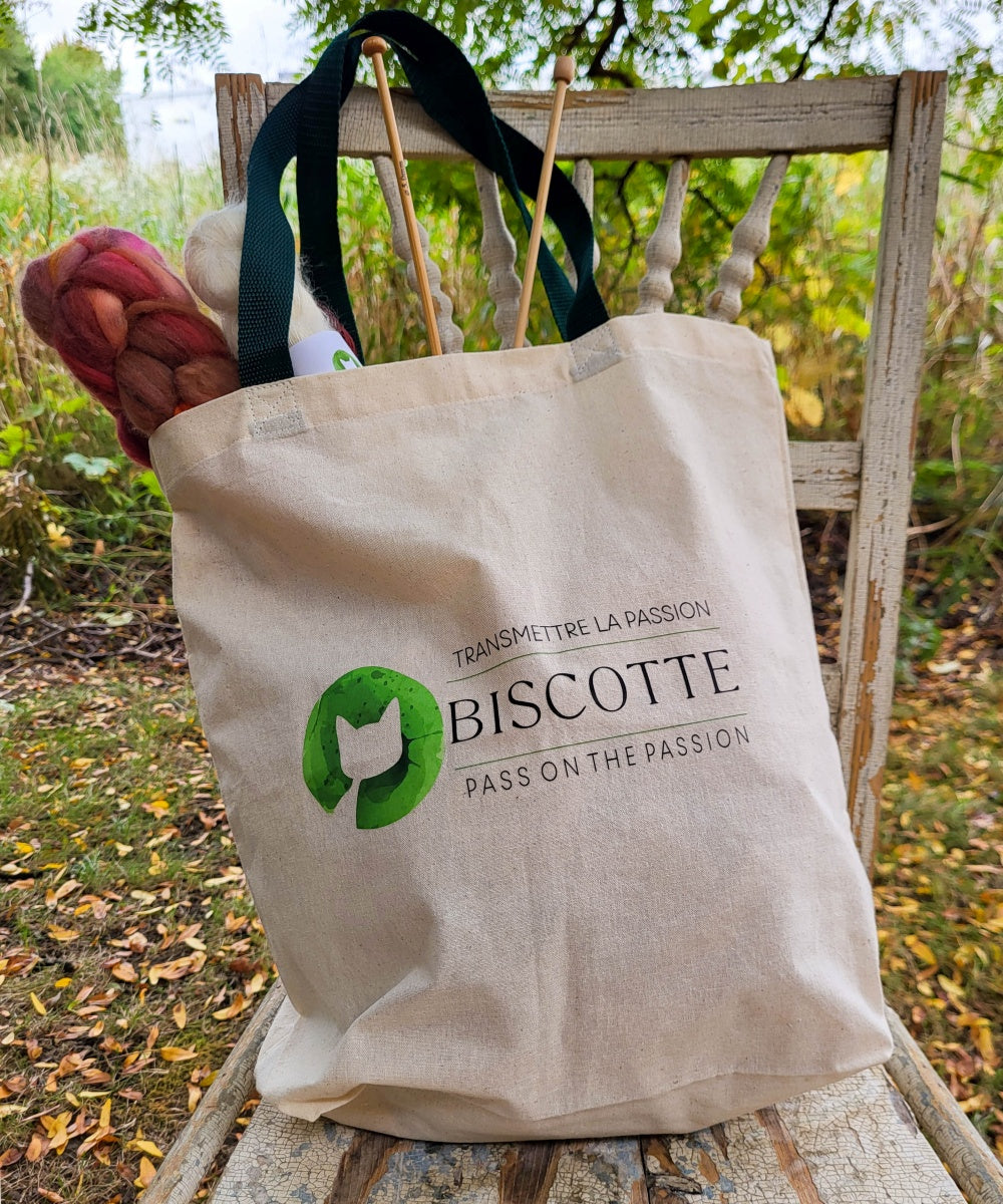 Whether you use it to carry your lunch, your knitting, or your shoes, this bag is perfect for you. Share your passion for knitting with this bag in Biscotte colors.