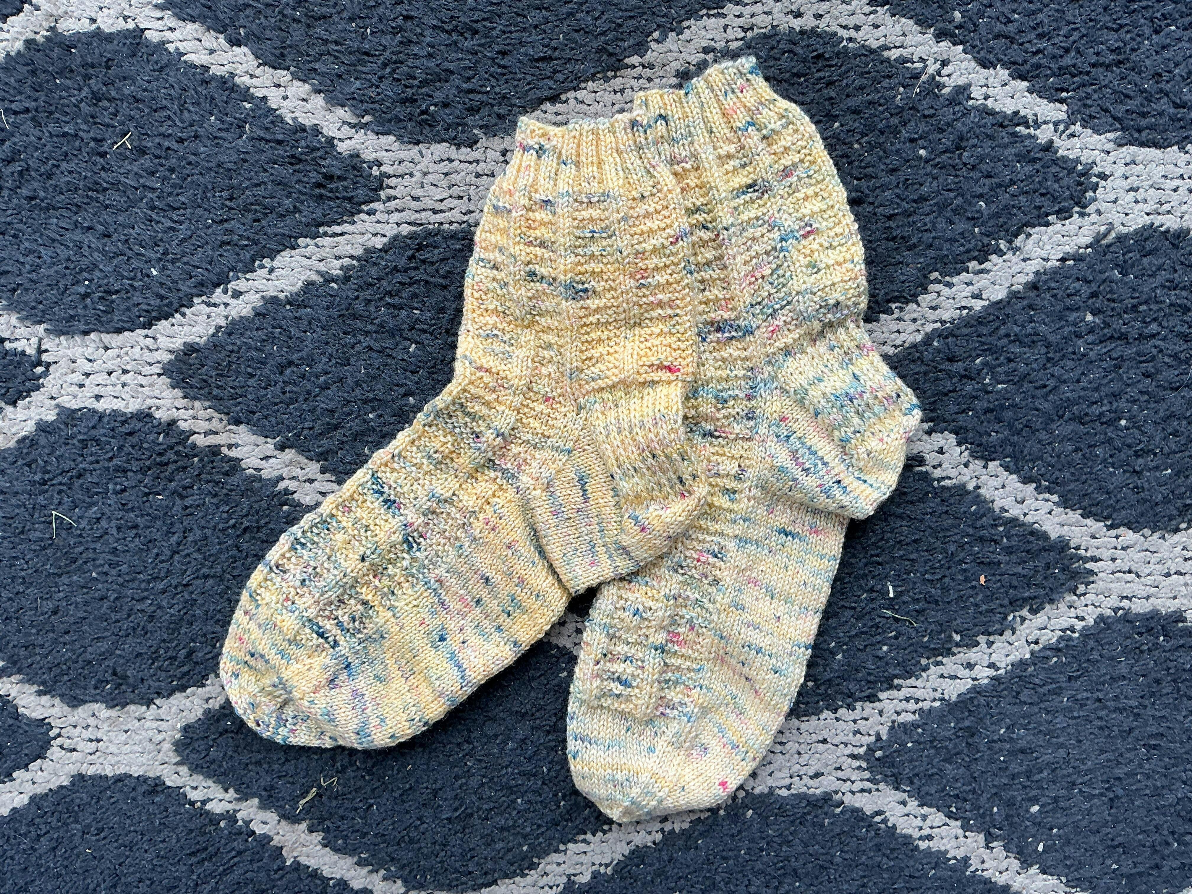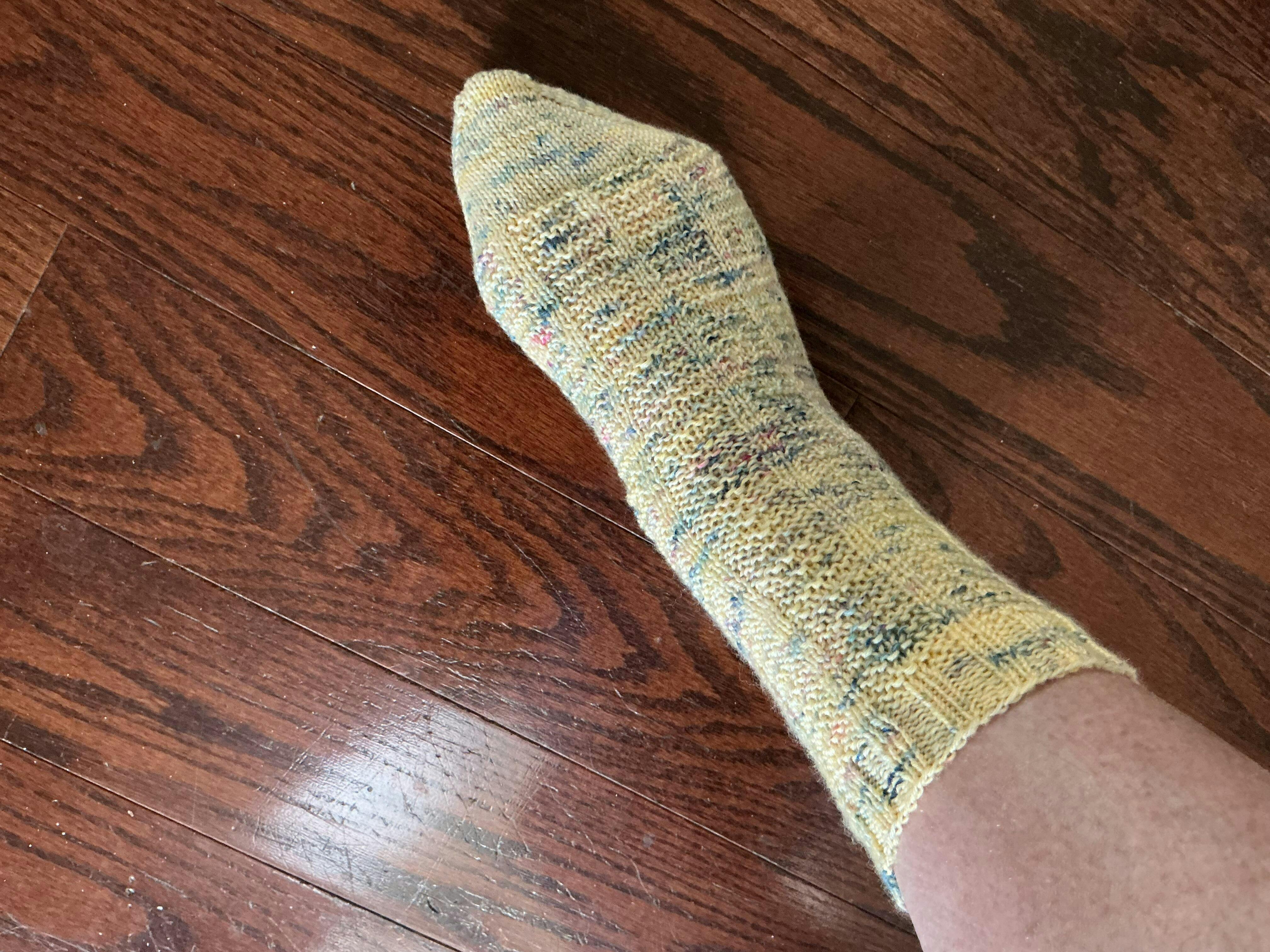 NOTE: These socks are knit from the top down using a very easy to memorize stitch pattern making them the ideal project to take to your favorite place.