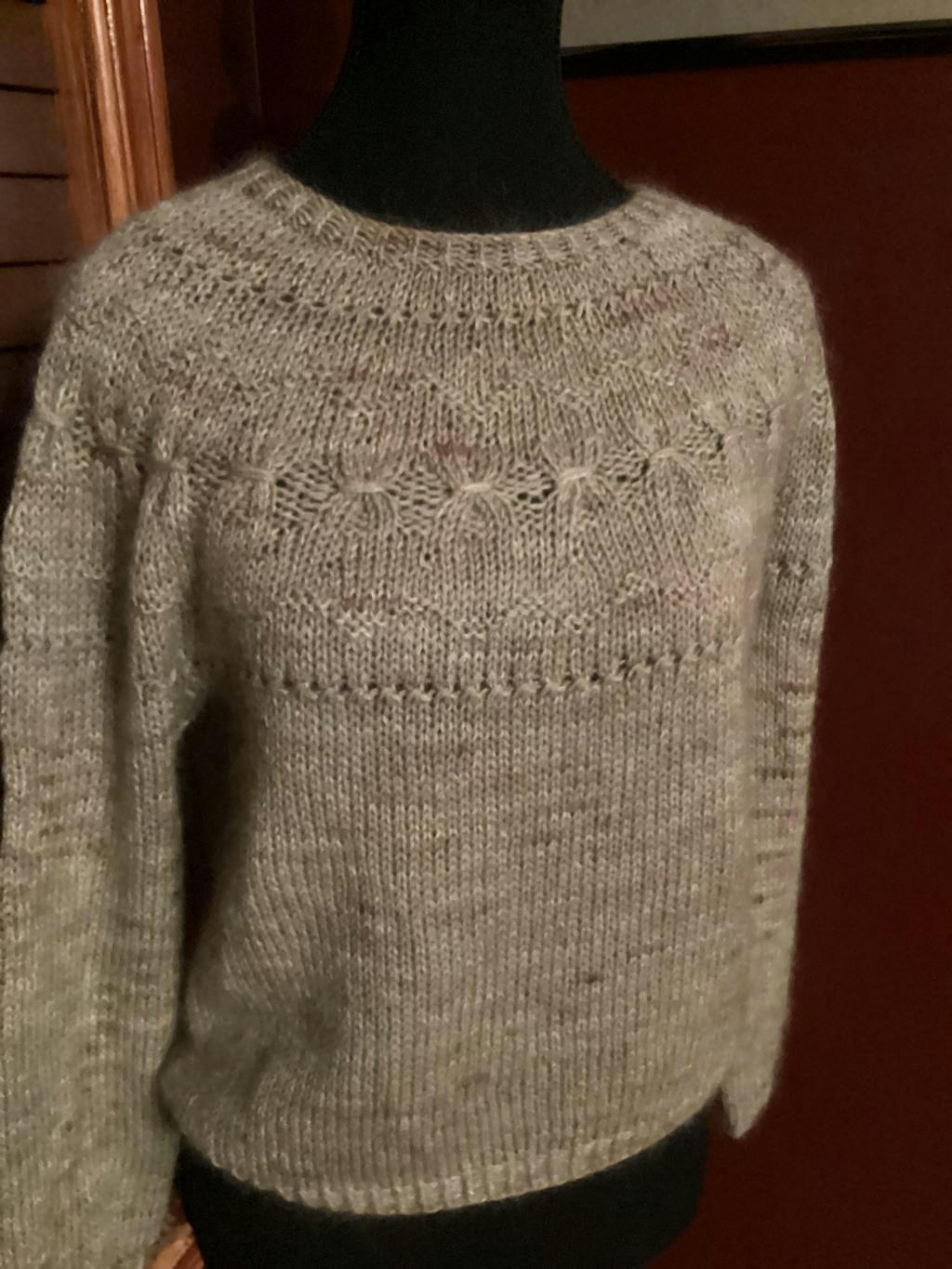 The Pretty Ribbons Pullover by Andrea Yetman is a true testament to the beauty of the yarn we work with! Each combination is simply stunning, and our latest project featuring this exquisite piece was created using our Merica yarn doubled with our Kid Silk.