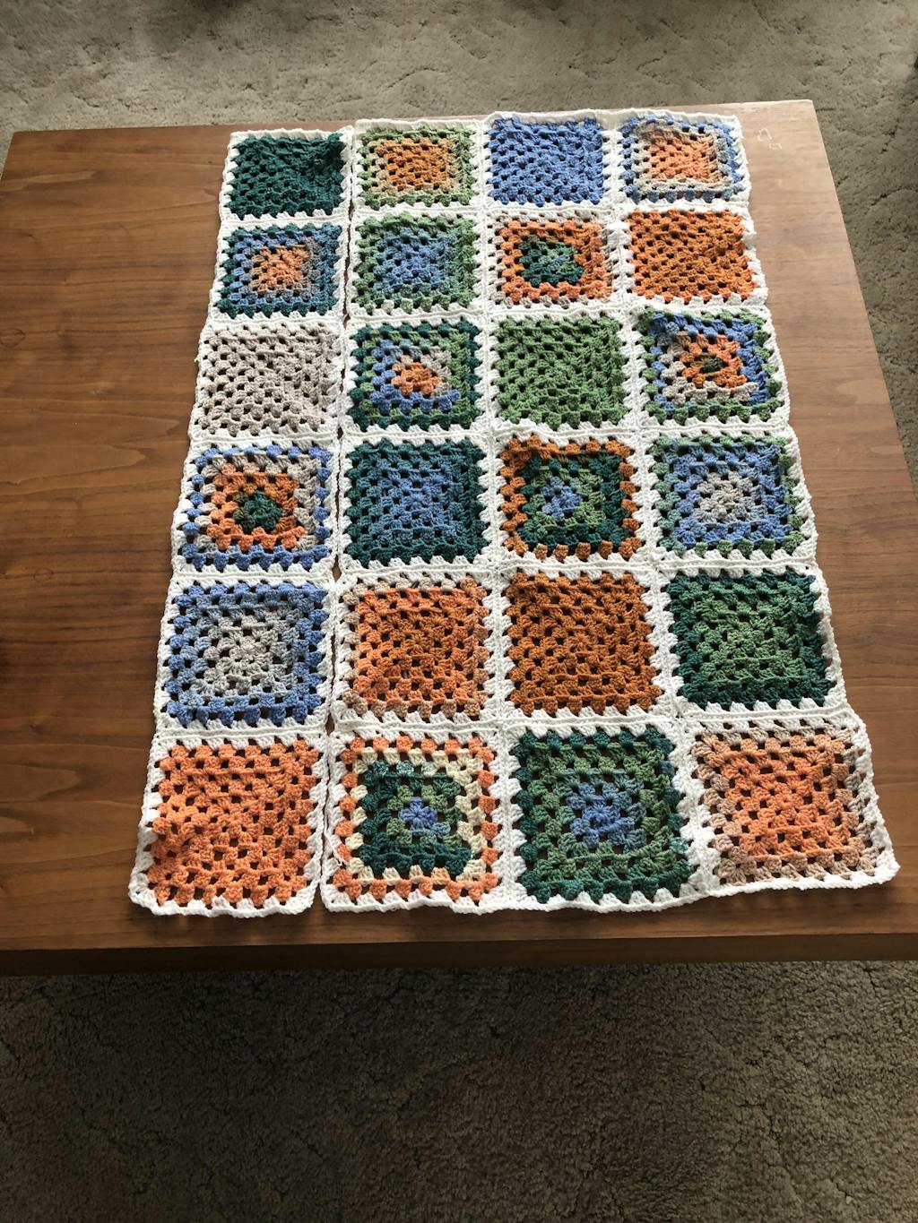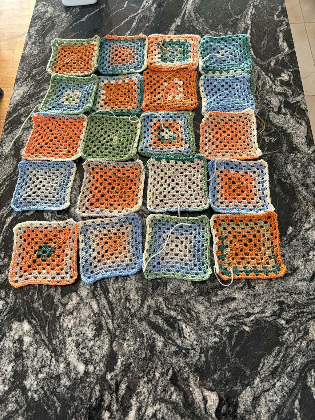 You can crochet 24 granny squares with each ball: 12 gradient effect squares, 6 striped effect squares, and 6 solid colour squares.