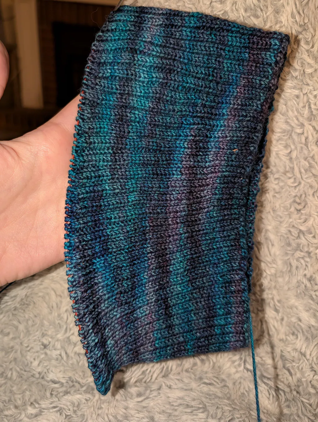This hand-dyed sock yarn is made of 85% merino wool and 15% nylon.