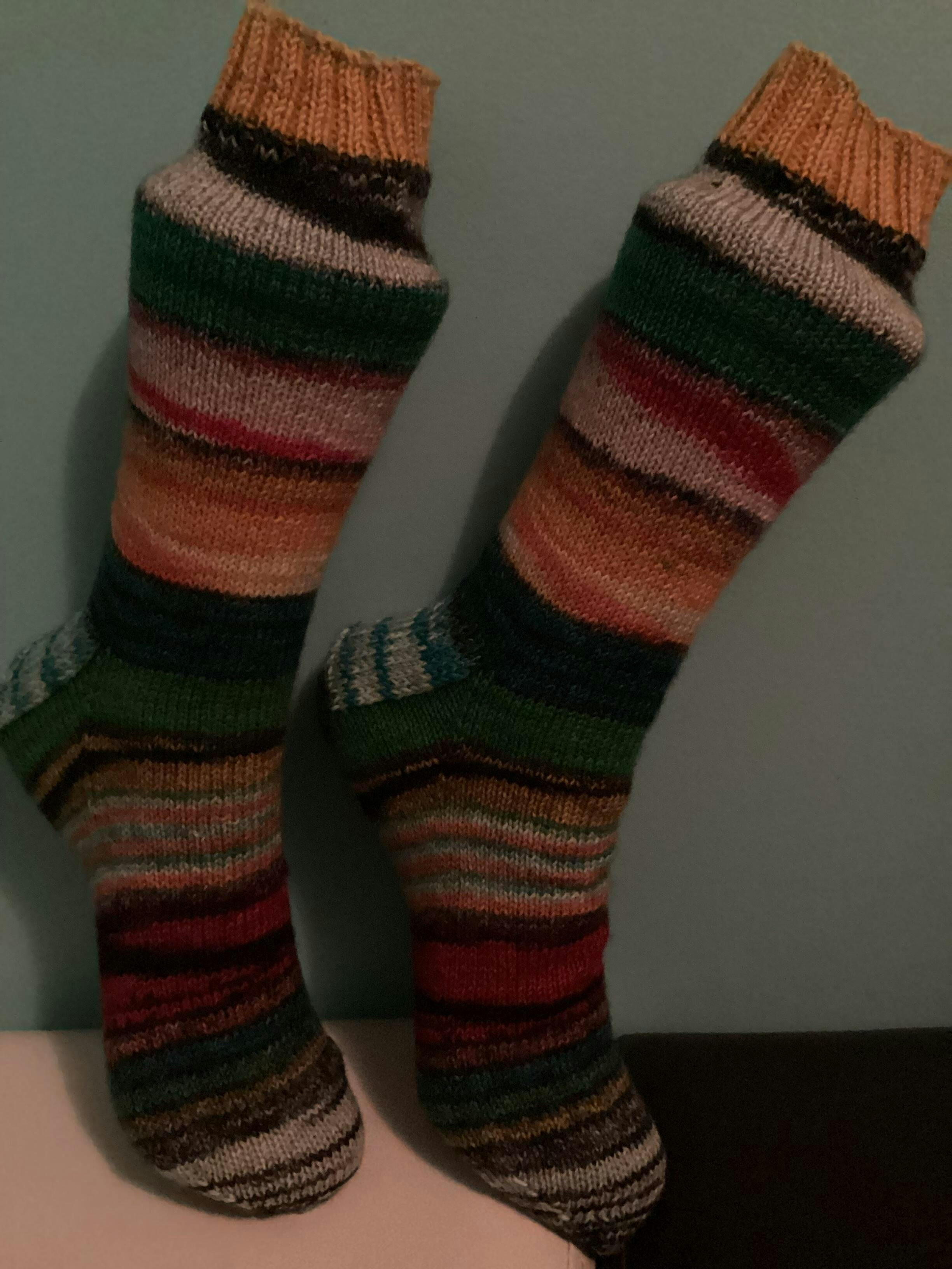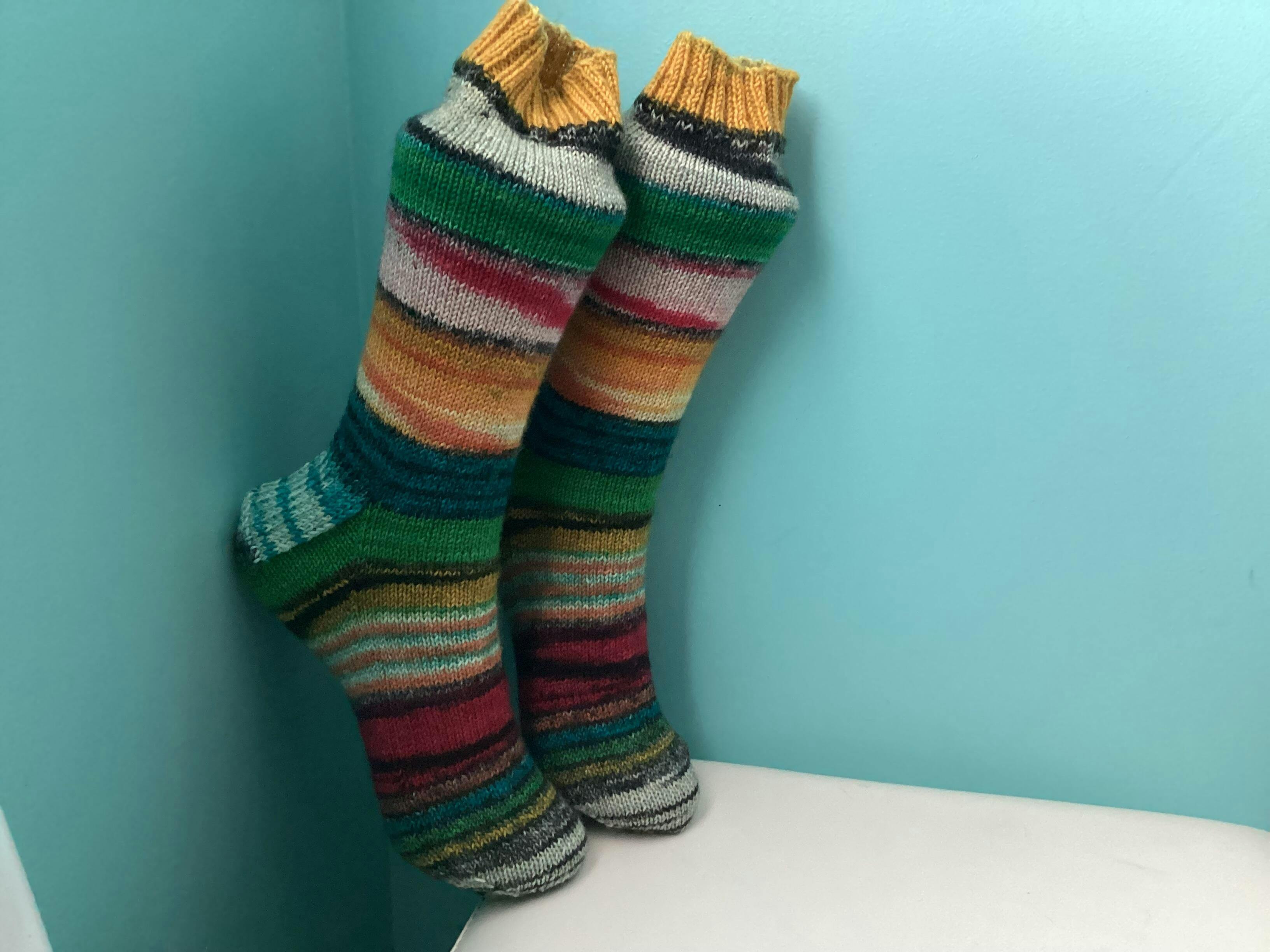 Using just one ball of Eclectic Sock yarn, you can knit two identical socks. This is possible due to their perfect loop philosophy, which includes a section of white yarn in the center of the ball. This white yarn indicates where the first sock ends and the next one begins.