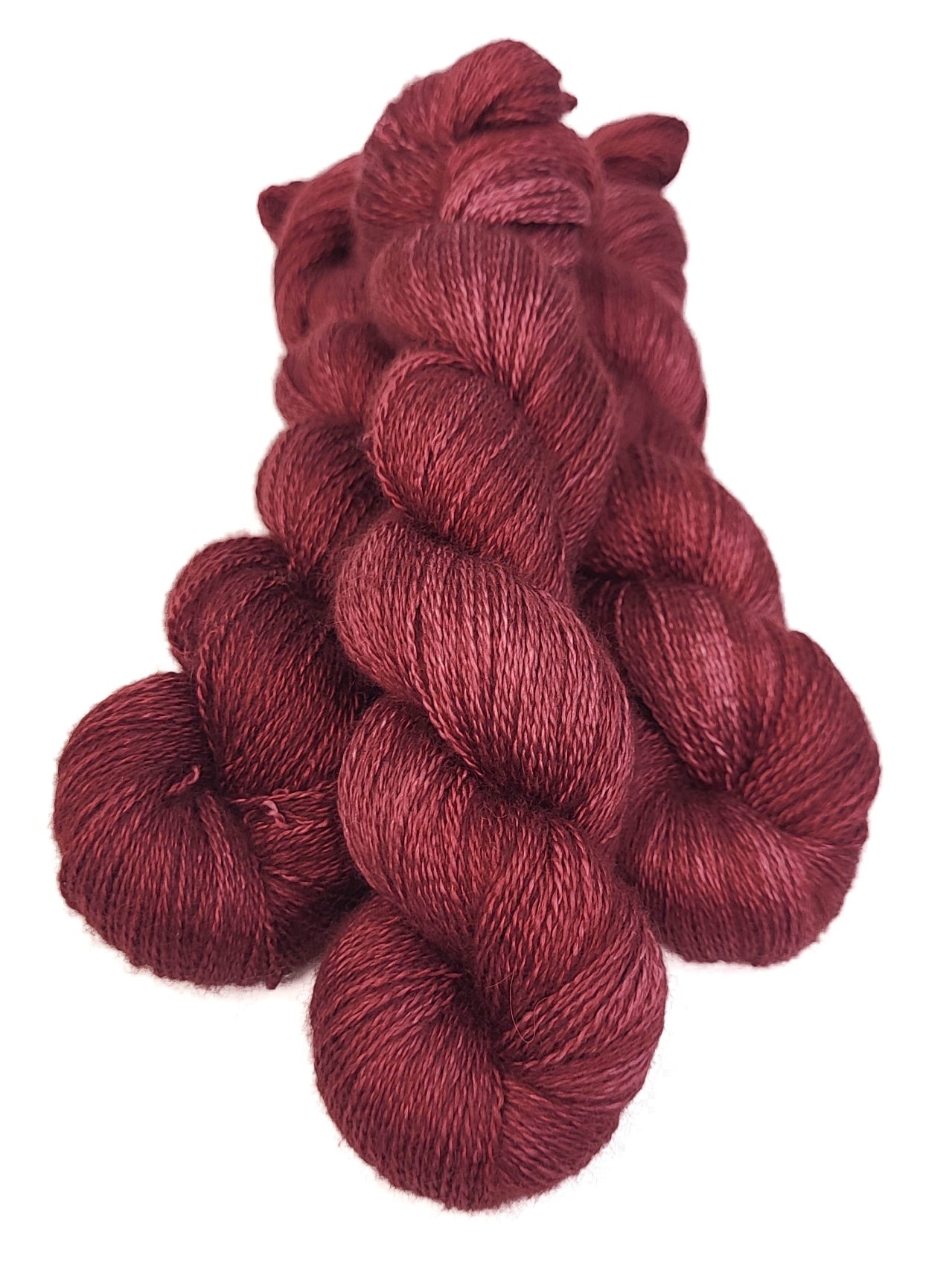 Our hand-dyed Cashsilk Lace yarn is a fine blend of cashmere and silk.