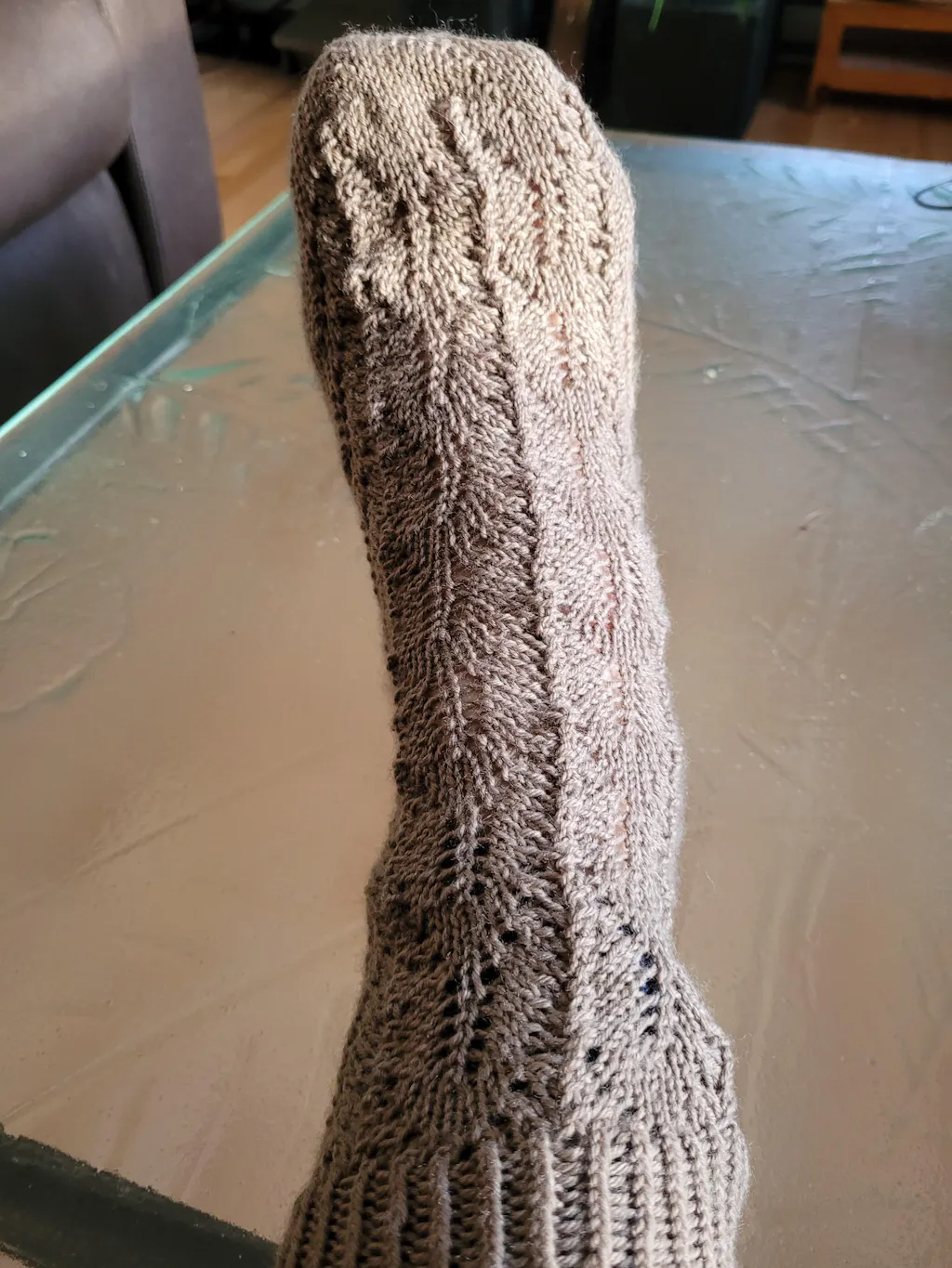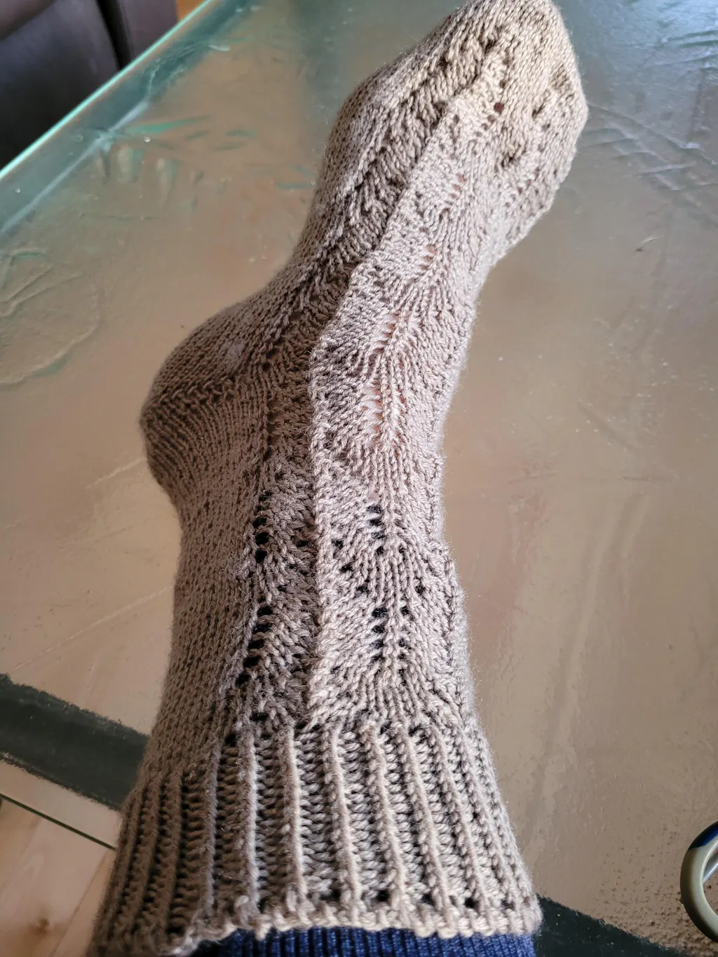 This sock design is knitted from the toe up to the ribs with a heel shaped in short rows. The name Walrus Kisses is inspired by the stitch pattern on the front of the leg that reminds me of a walrus moustache. - Louise