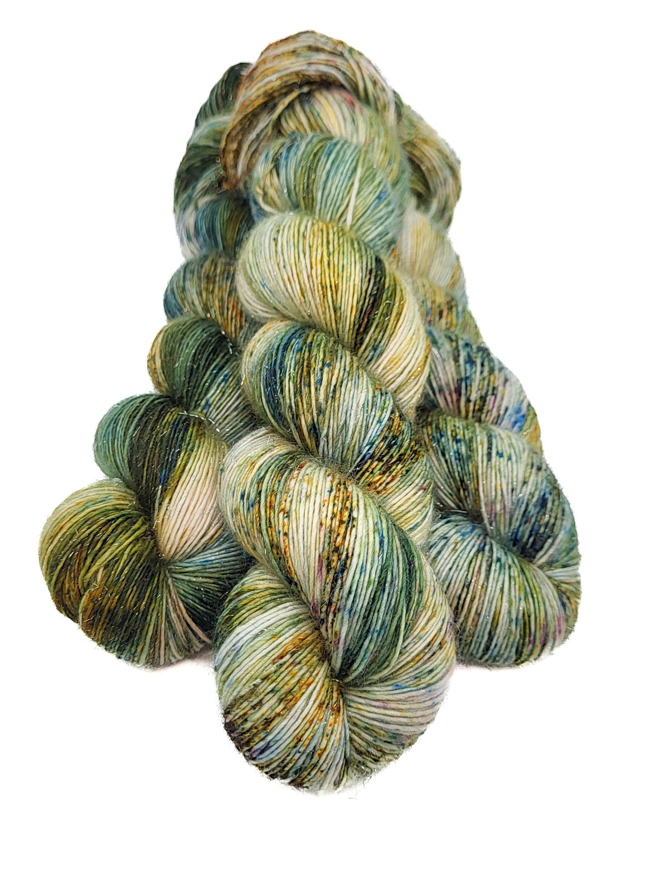 Made of 95% merino superwash and 5% stellina silver , we believe this hand-dyed yarn also contains a bit of fairy dust!