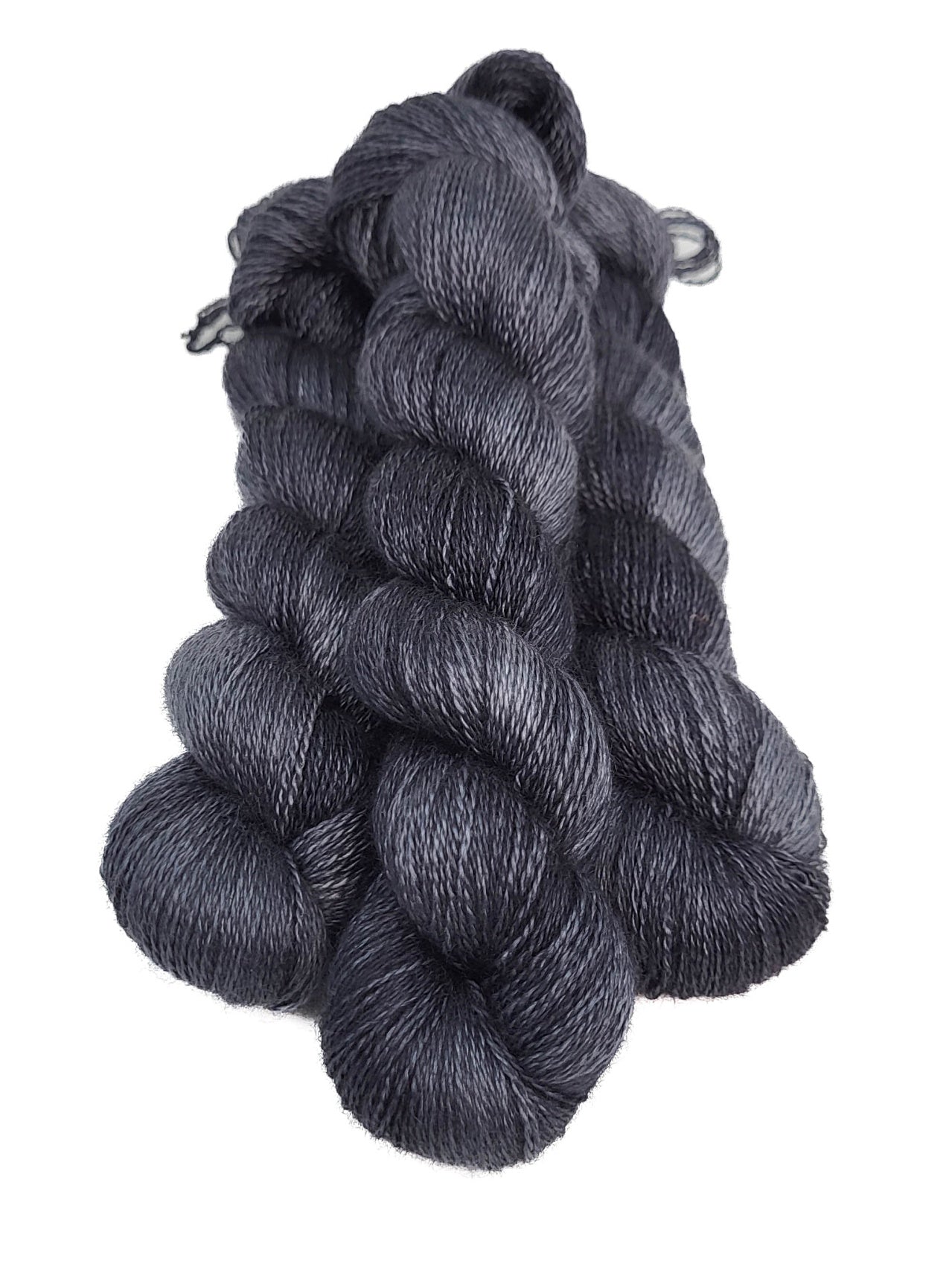 Our hand-dyed Cashsilk Lace yarn is a fine blend of cashmere and silk.