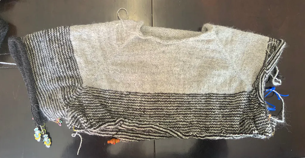 Make sure to read the instructions thoroughly to the end of each section, as you will need to increase the front neck, body, and sleeves simultaneously.