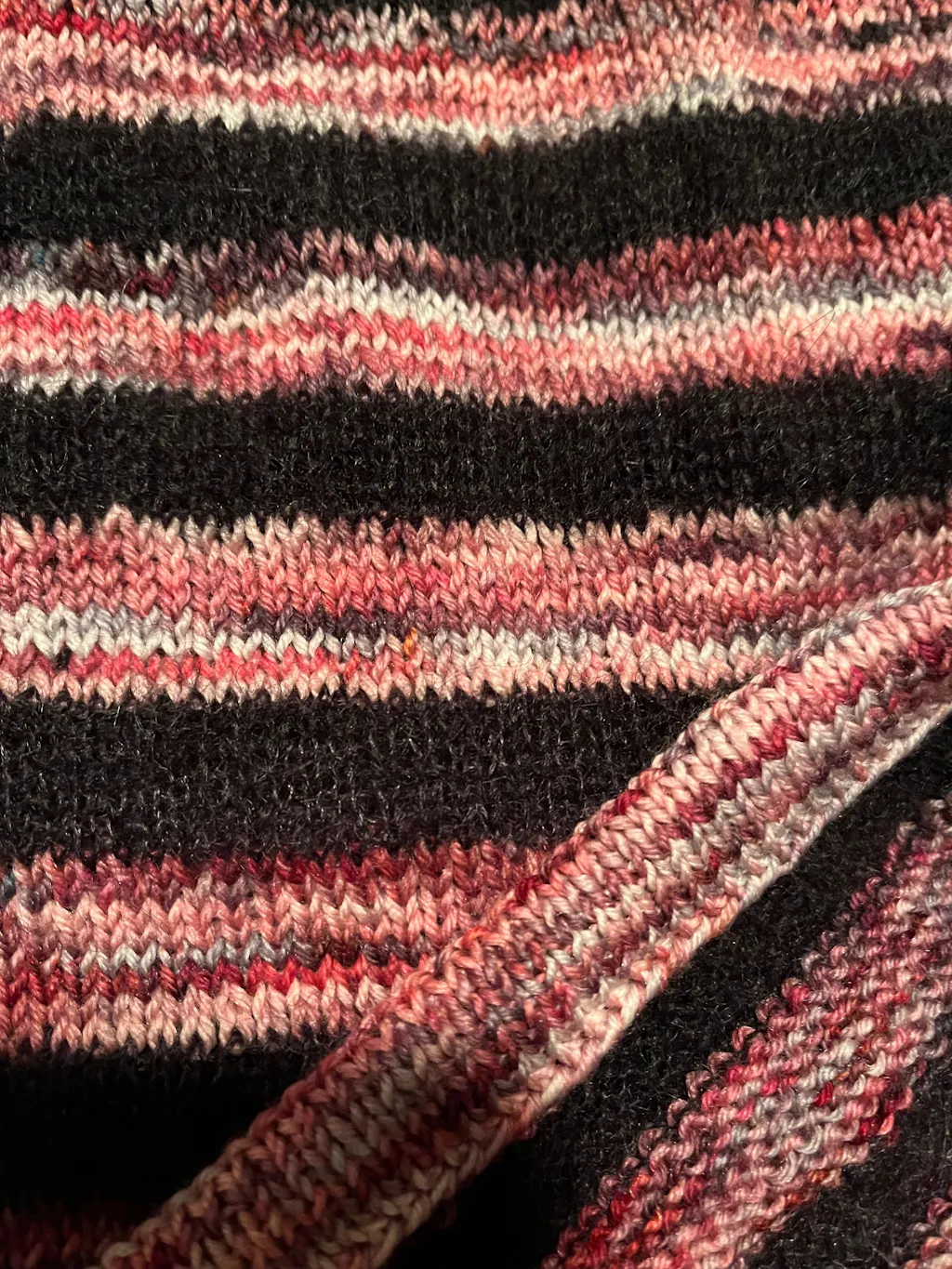 This hand-dyed sock yarn is made of 85% merino wool and 15% nylon.
