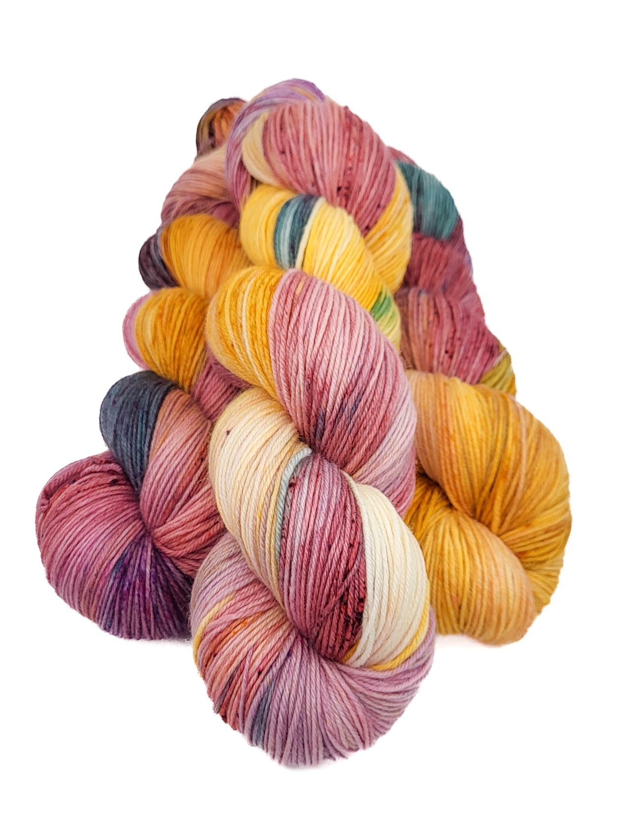 Each skein is hand-dyed with care and contains 400 meters (434 yards) of soft and washable yarn to knit socks, shawls or any other project to be worn next to the skin!