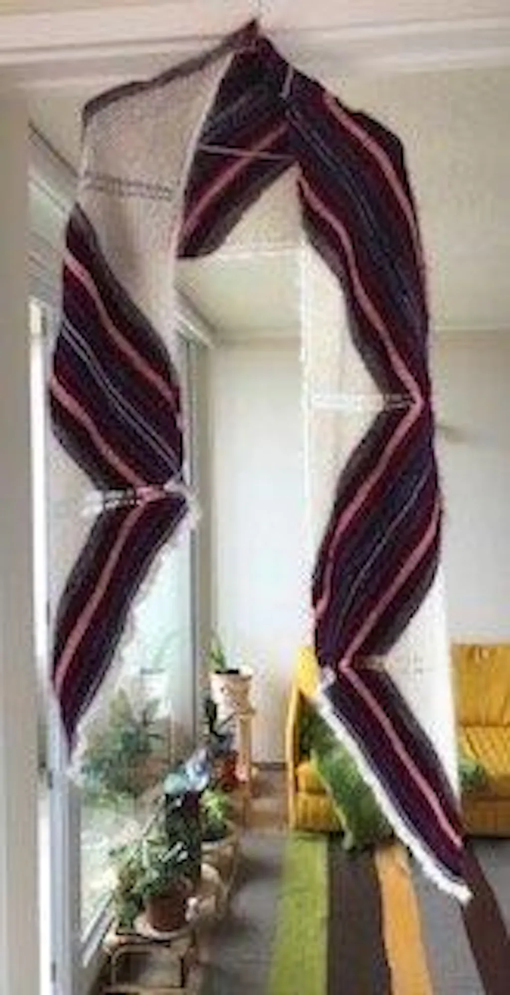 FINAL SIZE: 222 cm; 87" long and 22cm; 8 ½" wide. To make a shorter stole, subtract one (or more) triangles. The quantity of yarn suggested is sufficient to knit up to 6 triangles, as shown in the photo.
