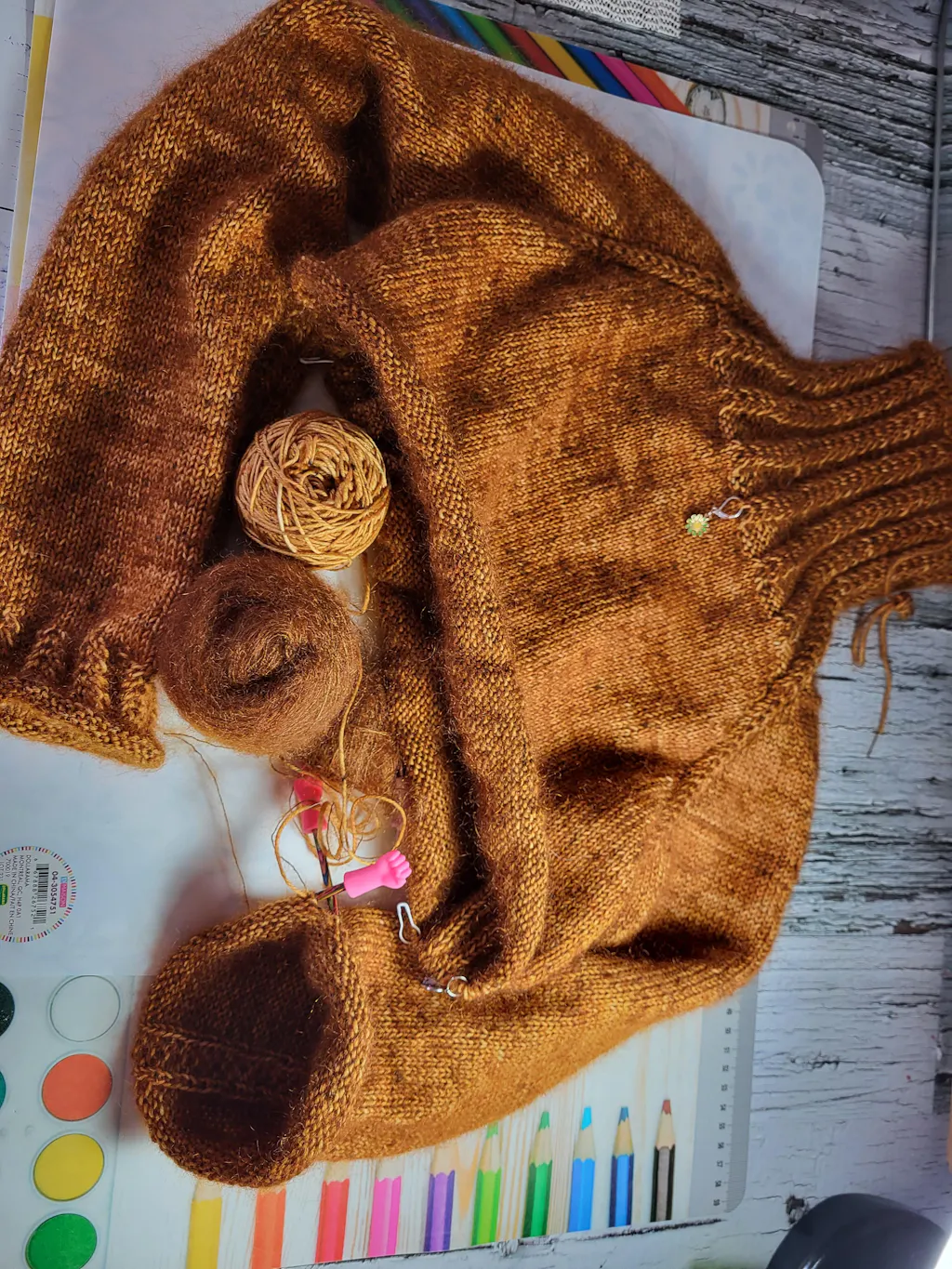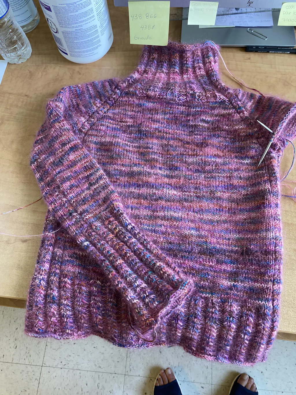 The design is seamless, worked top-dow in the round, mainly in stockinette st, in combination with faux cable (no need for auxiliary needle). Back yoke is shaped using short rows.