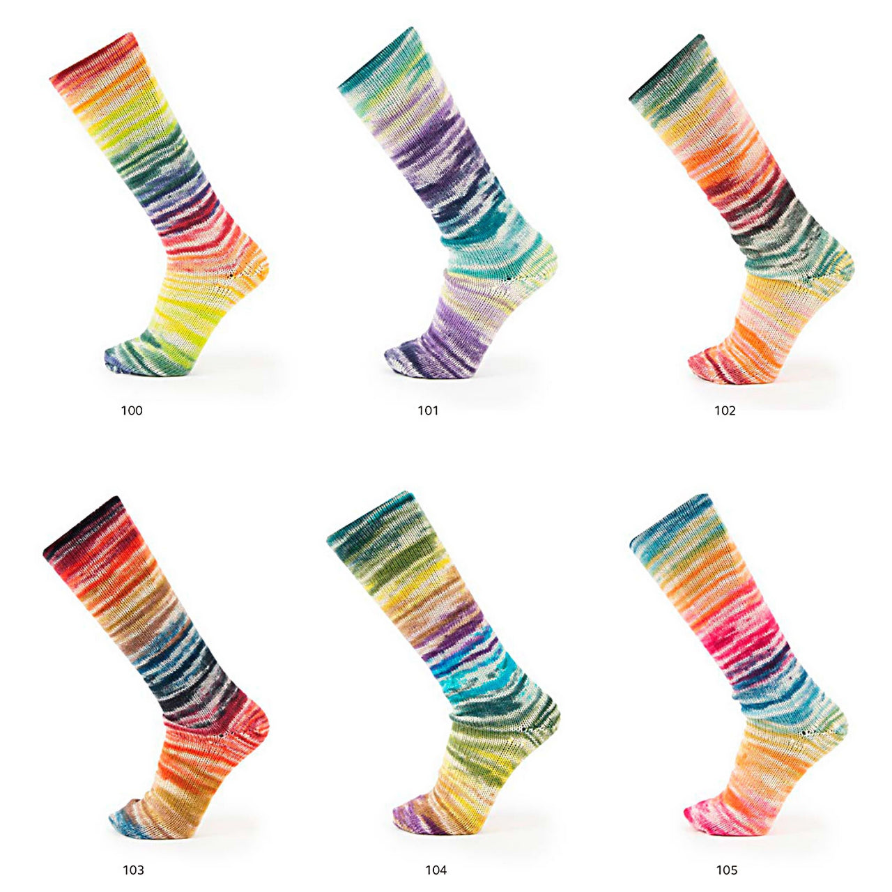 Inspired by her love of vibrant colors and perfect shapes, this special edition offers 6 unique colorways to knit socks and accessories with flawless results. Relax as you knit and enjoy the pleasure of creating handmade pieces full of personality and style.