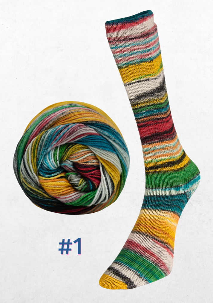 Avec une seule balle de laine Eclectic Sock, vous pouvez tricoter deux chaussettes identiques. Cela est rendu possible grâce à leur philosophie de « perfect loop » qui prévoit une section de laine blanche au centre de la balle. Cette portion blanche indique où se termine la première chaussette et où commence la suivante.
