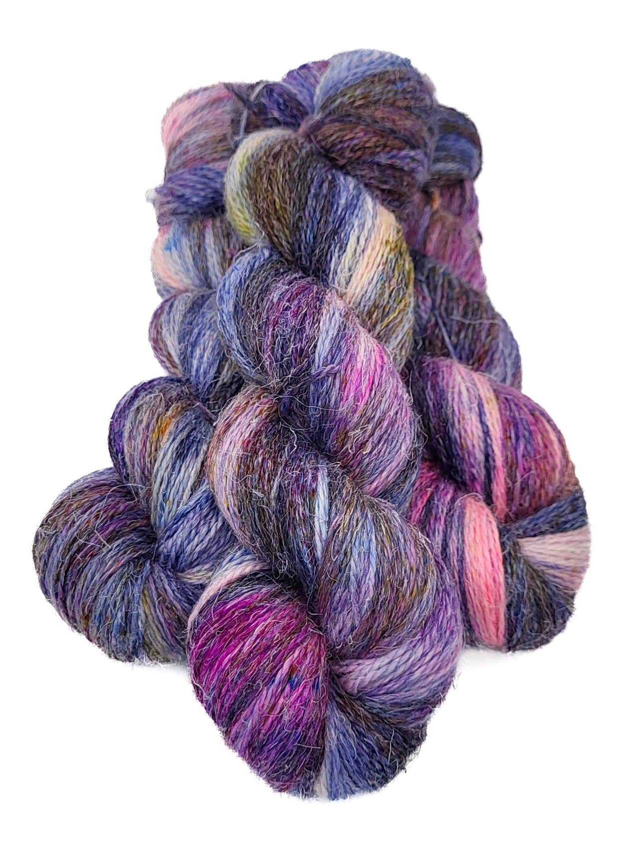 ATTENTION: Le prix indiqué est pour un (1) écheveau seulement. Il se peut que nous présentions sur les photos trois (3) écheveaux pour bien illustrer les nuances des couleurs de laines teintes à la main.