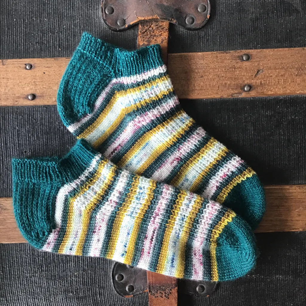 Cette laine à bas teinte à la main est composée à 85 % de laine mérinos et à 15 % de nylon.