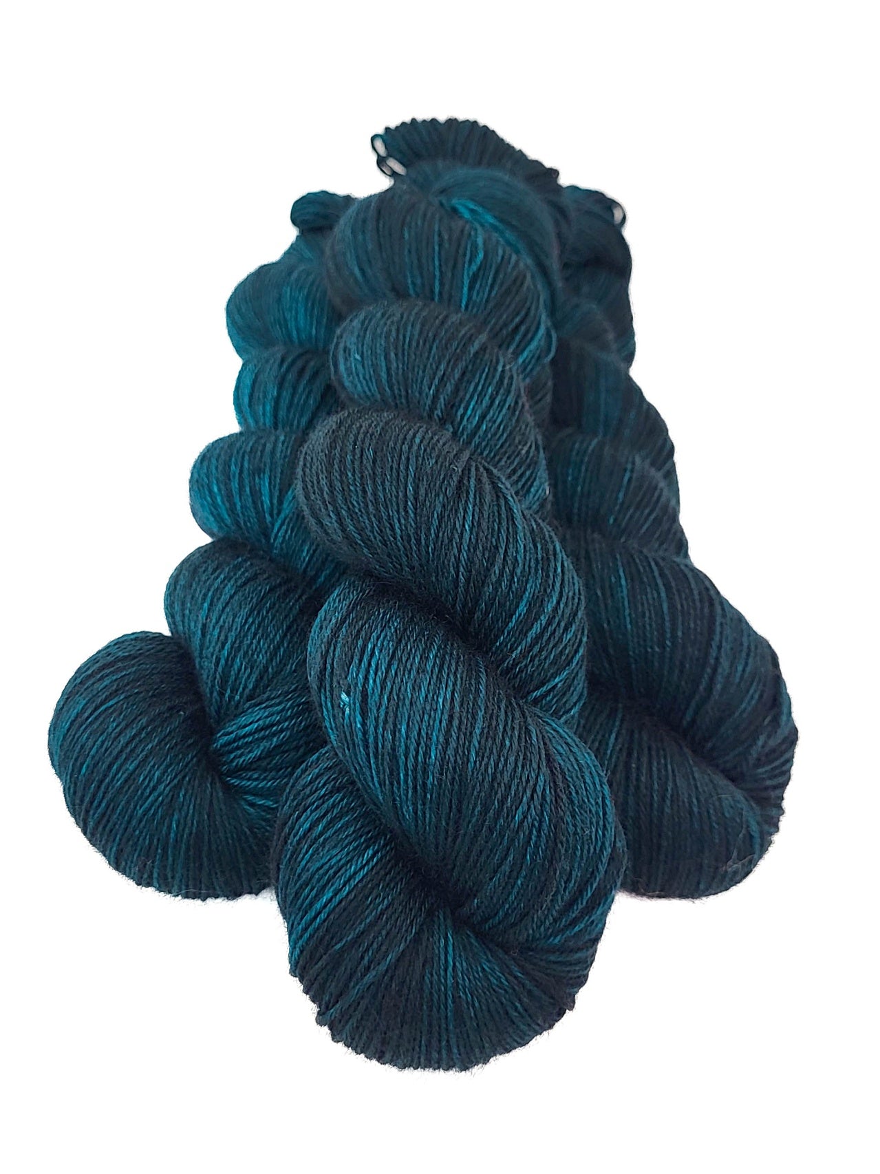 Chaque écheveau est teint à la main avec soin et contient 400 mètres de laine douce et lavable pour tricoter des bas, châles ou tout autre projet à porter directement contre votre peau!