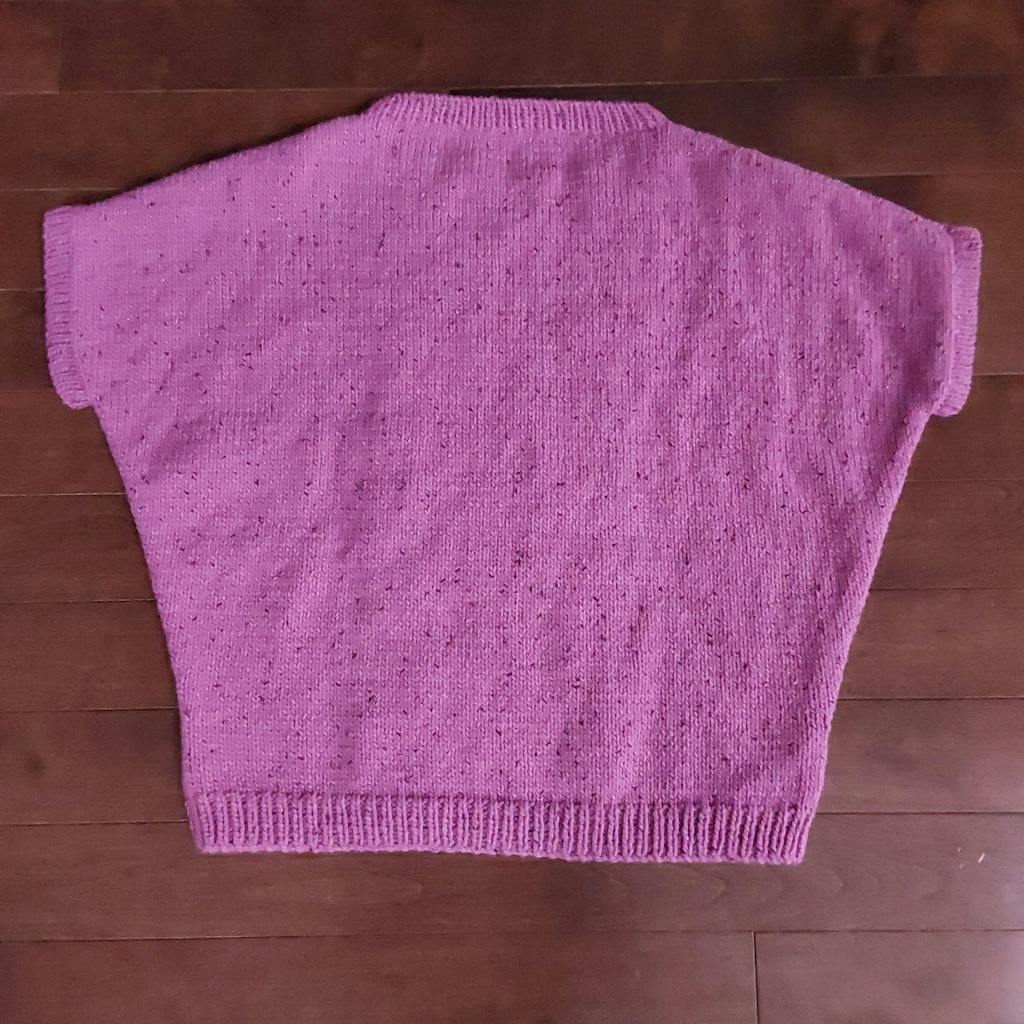 Le vêtement est tricoté de bas en haut en pièces détachées puis cousu ensemble.