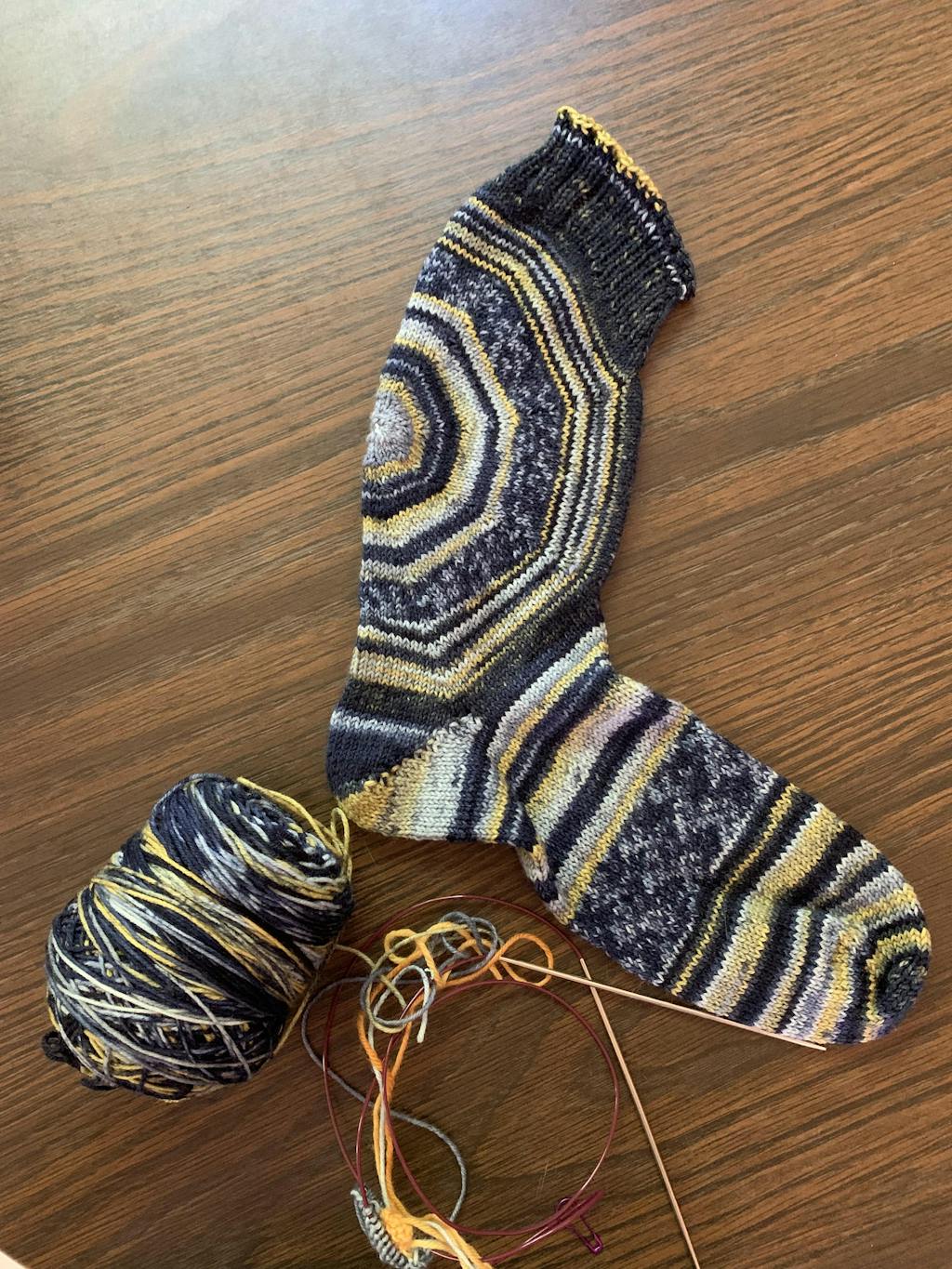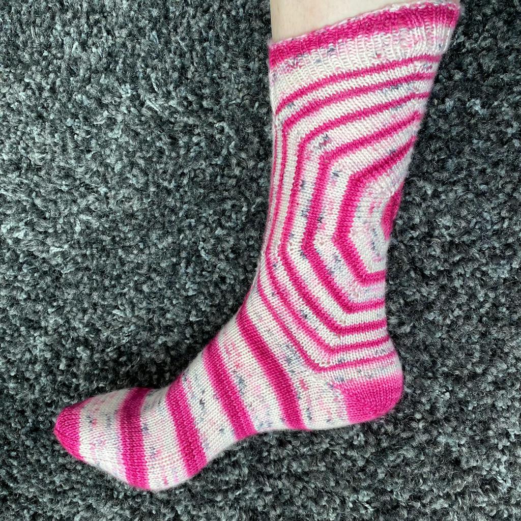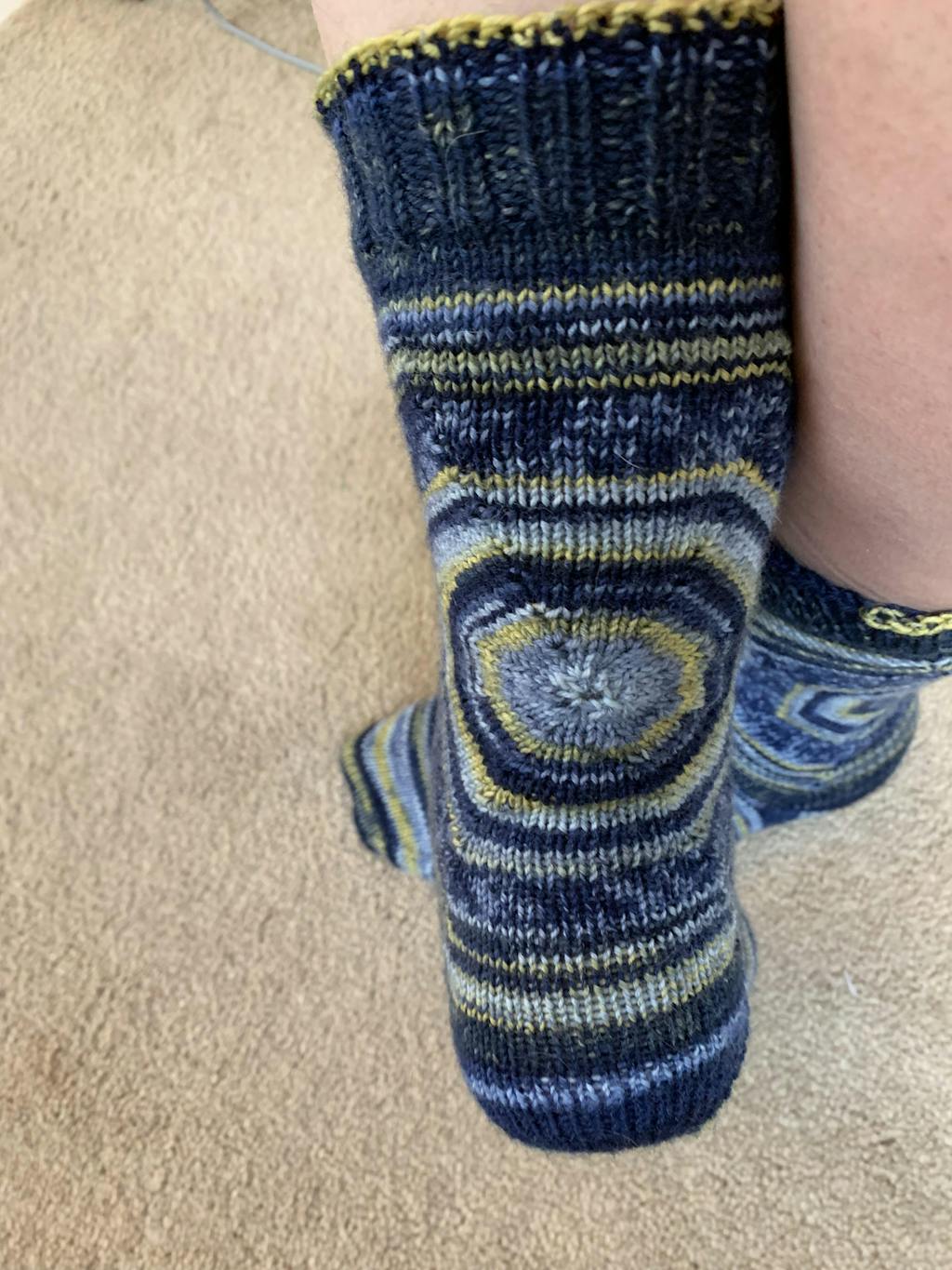 Le patron des chaussettes Bullseye est parfait pour mettre en valeur votre laine Autorayanteᵐᶜ !