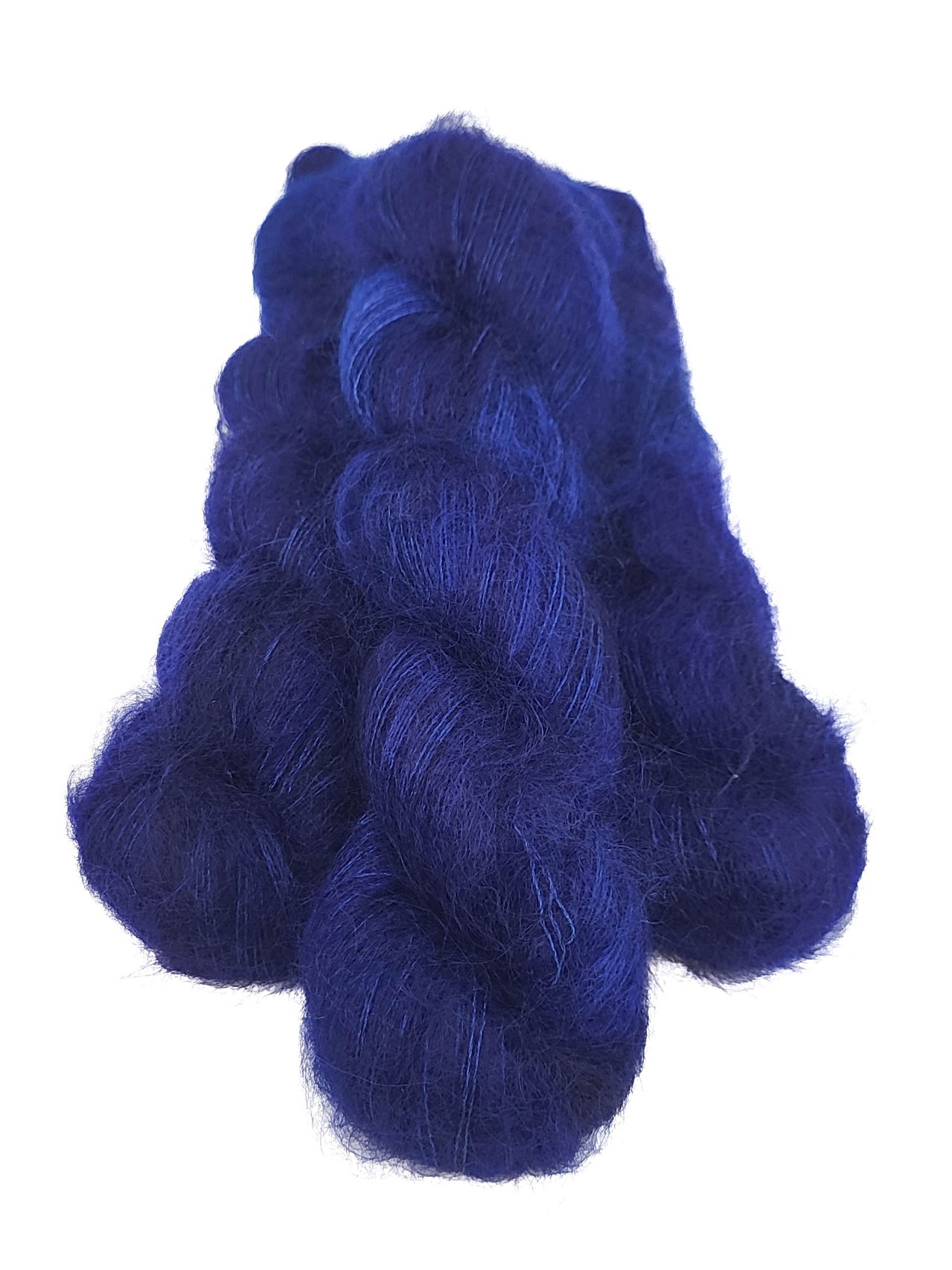Hermione est une laine teinte à la main composée de kid mohair et de soie, duveteuse et légère comme une plume !