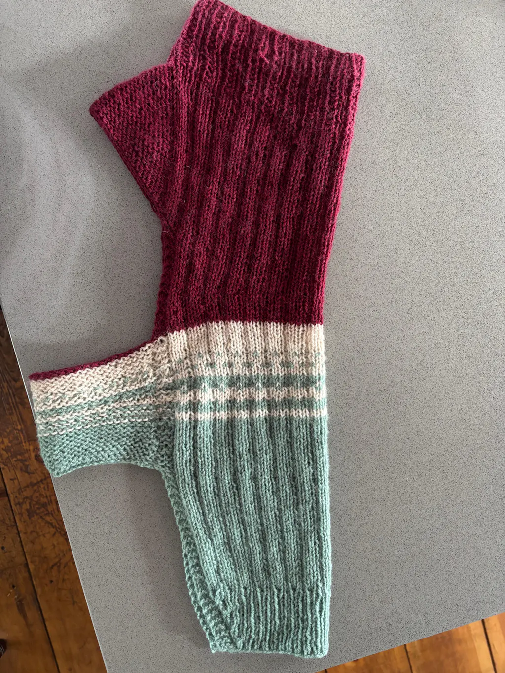 Le schéma de gauche servira de référence tout au long du projet et la flèche indique le sens du tricot.