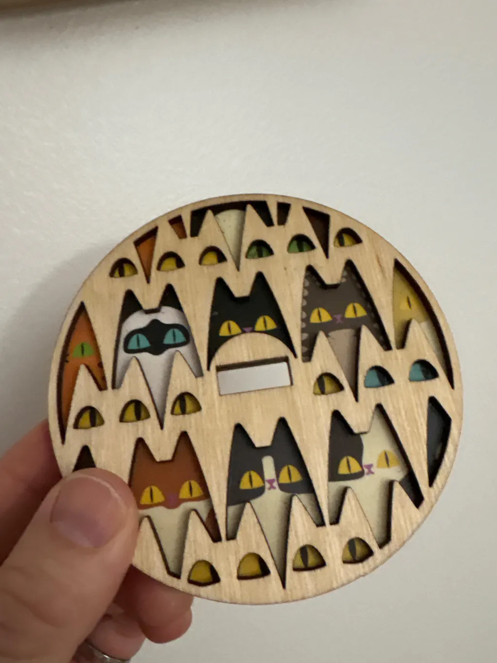 Made of natural birch plywood. 4" diameter base, 6" high (with ring). The original Mini Minder will hold up to 100g cake or balls of yarn.